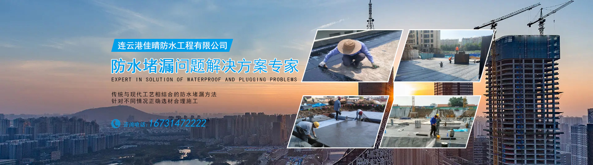 连云港佳晴防水工程有限公司坐落在美丽的城市江苏连云港,是一家专门从事防水堵漏翻新施工的技术型企业,拥有建筑业企业资质证书、建筑施工企业安全生产许可证,主要从事防水施工工程:包含地库、顶板、侧墙、屋面所有防水等;防水堵漏工程:包含地库、顶板、侧墙、屋面等高压注浆防水;翻新工程:包含屋面翻新、室内外家装工装翻新(拆除以及涂料等)、地下室翻新(涂料、地坪、车位线);涂料工程:防水涂料工程、室内涂料工程、外墙漆工程等。连云港佳晴防水工程有限公司自从事防水工程技术服务以来,服务了多家客户,优良的质量和技术赢得了广大客户的好评。经过多年的发展,形成了防水、...